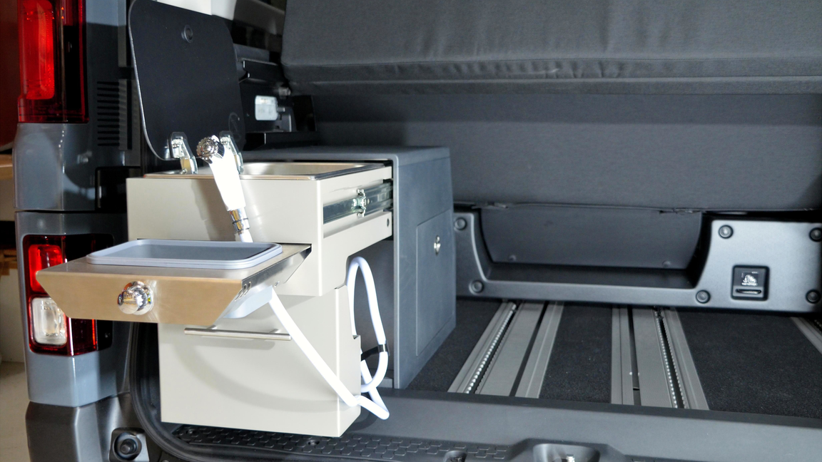 Modulī iekļauta iebūvēta gāzes plīts, atlokāma izlietne ar smidzināšanas piederumu, piecu litru tīrā ūdens tvertne un atjautīgi veidots glabāšanas nodalījums, kas šo automobili padara par īstu kokonu uz riteņiem.