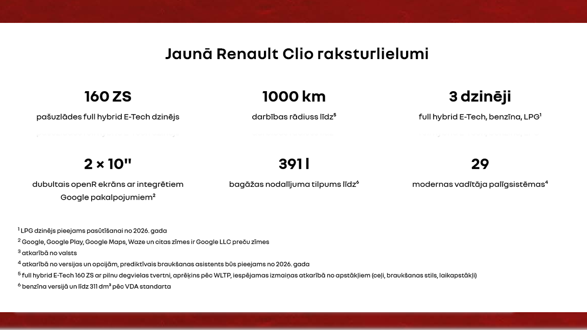Jaunais Clio piedāvā atjaunotu papildinošu spēka agregātu klāstu (benzīns vai sašķidrinātā naftas gāze dzinējiem ar 115 ZS jaudu un lielākiem), piedāvājot gan uzlabotu veiktspēju, gan efektivitāti.