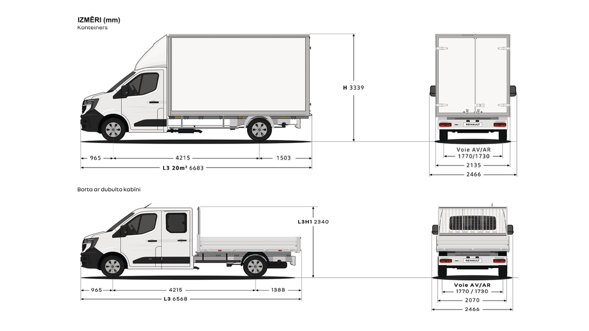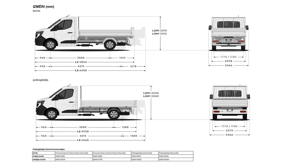 Jaunais Renault Master pašizgāzējs vai ar kravas kasti